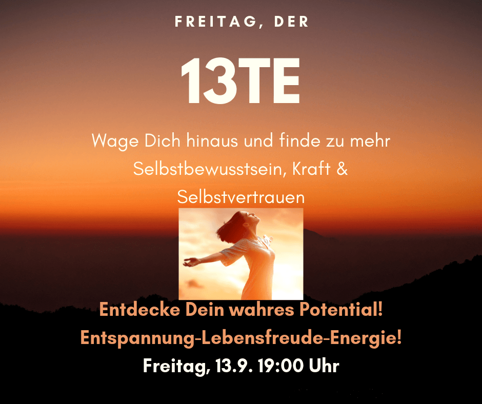Wünschst Du Dir (mehr) Selbstbewusstsein und -vertrauen?Wenn Du am Freitag, dem 13.9.2019 dabei sein möchtest oder Fragen dazu hast, melde Dich!